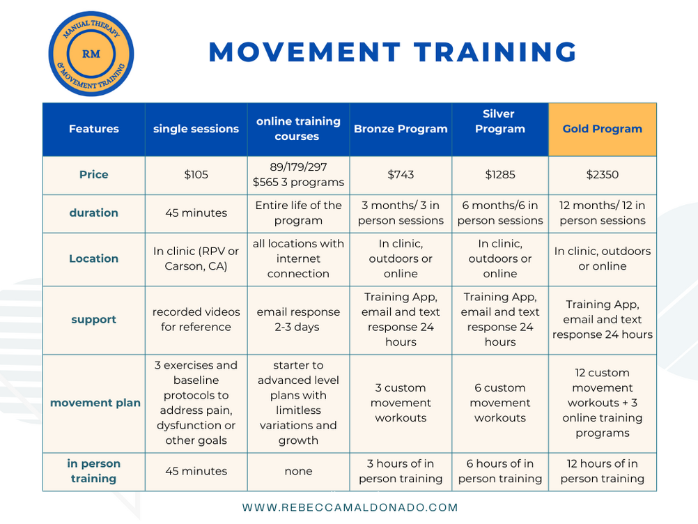 After going through your routine with me personally you will have access to support videos or the option to access my MOVE app where you can view the videos of your exercise plan, log workouts, connect with me in case of questions or feedback, and enroll in one of my all inclusive pre-paid programs.